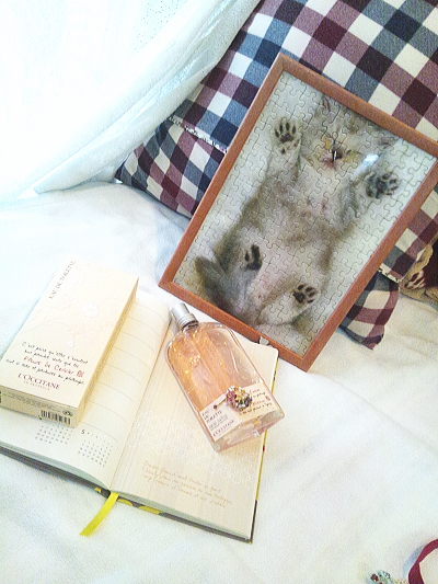しぃさんにキャットニップのドライハーブをつめた枕を作ったのです。