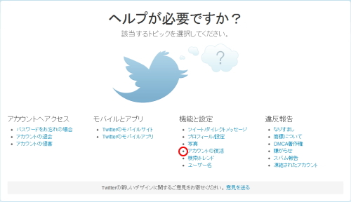 さぁ、helpに直行です。http://support.twitter.com/forms/ ←ここにアクセスしてください、とのこと。