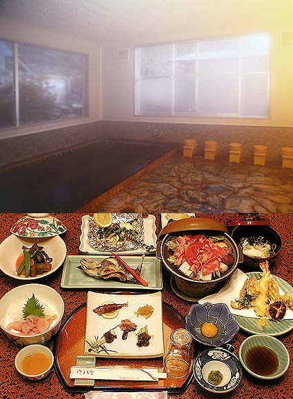 温泉は透明褐色の沃度分の多い「黒湯の温泉」です。